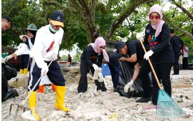 Tim P2WLS Lakukan Aksi Gebrak Gotong Royong di Pantai Pasir Putih Katibung (Cuplikcom/Ist)