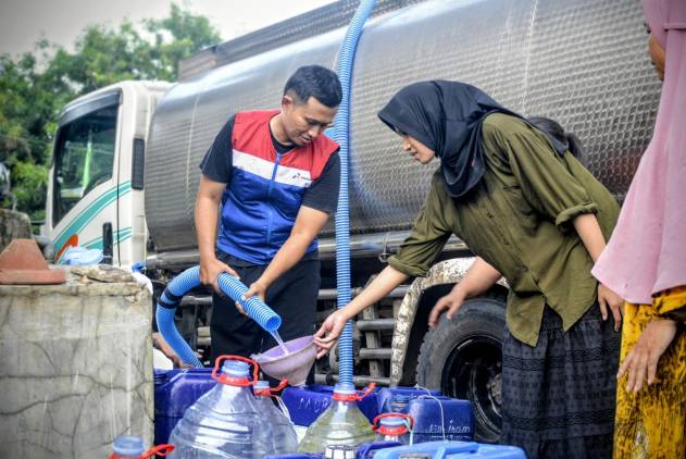 Tim Corporate Social Responsibility (CSR) Kilang Pertamina Balongan pada Kamis (tanggal kegiatan dapat disesuaikan) terlihat sibuk melakukan pengisian air bersih ke jerigen-jerigen milik warga. Kegiatan ini merupakan bagian dari program tanggung jawab sosial perusahaan untuk membantu memenuhi kebutuhan air bersih bagi masyarakat sekitar wilayah operasional kilang. (foto:winan/cuplikcom)