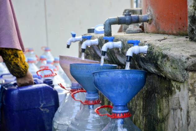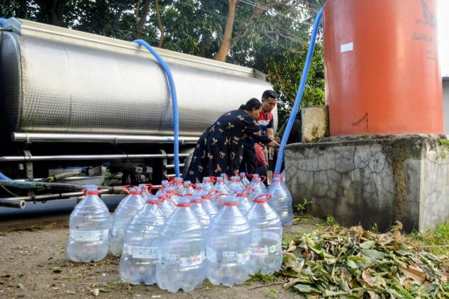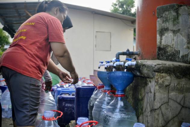 Warga menyiapkan galon dan jerigen untuk bantuan air dari Pertamina. (foto/winan/cuplikcom)