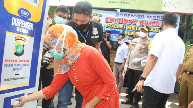 Jaga Pangan, Polres Jakarta Barat Siapkan Dispenser Beras Bagi Warga