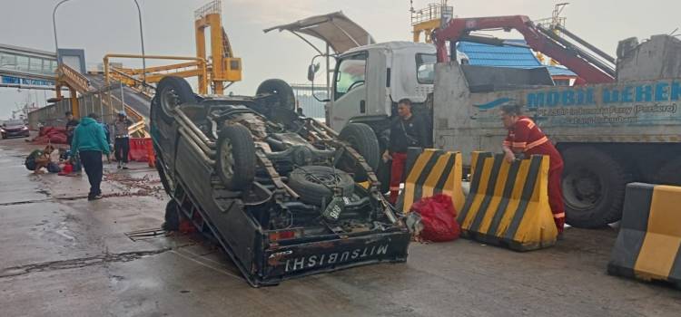 Kronologis L300 BE 8368 ZA Bermuatan Jengkol Terbalik Dipelabuhan Bakauheni