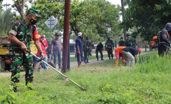 Cegah Banjir, Anggota Kodim 0616/Indramayu Bersama Warga Bersih-bersih Lingkungan