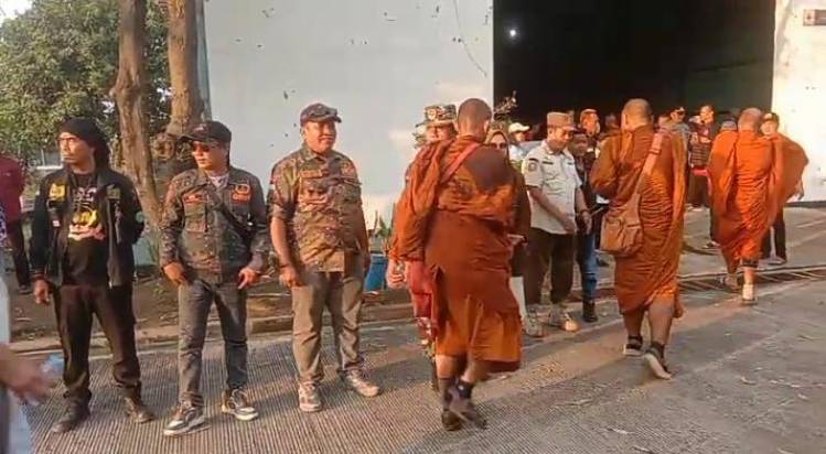 KEREN!!. Kapolsek Losarang Ikut Jalan Kaki Bersama Bhiksu Thudong Sejauh 10 Kilometer