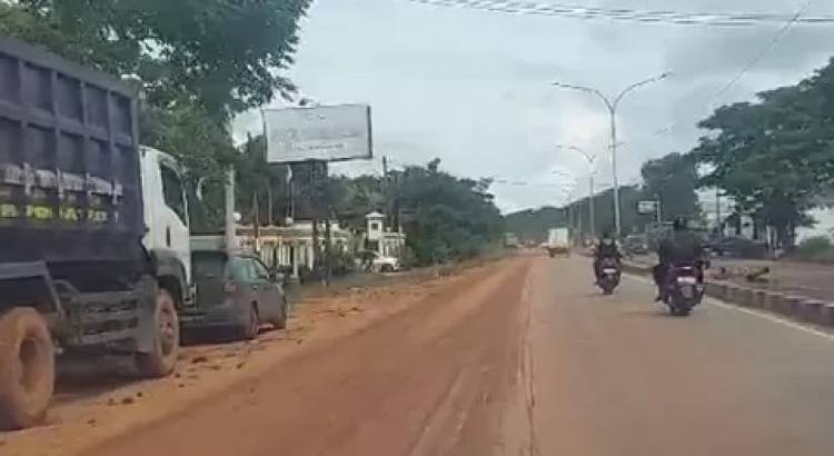 Cuplikcom - Indramayu - Ceceran tanah marah yang berserakan di jalan Pantura akses
