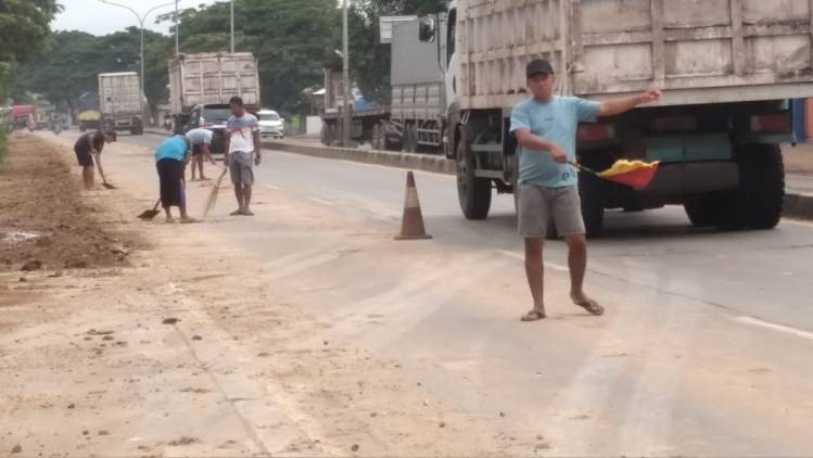 Cuplikcom - Indramayu - Melihat adanya kondisi pada lajur 1 (Satu) jalan raya arah