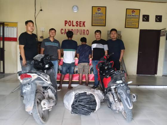 Cuplikcom - Lampung Selatan - Tim Tekab 308 Presisi Polsek Candipuro berhasil menangkap dua tersangka pencurian kabel listrik jenis Twise