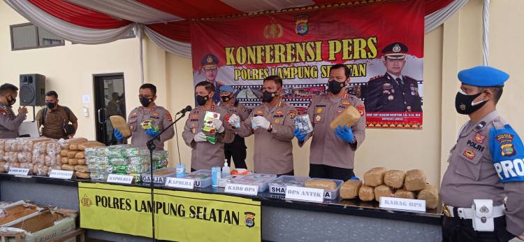 Kapolda Lampung Memimpin Konferensi Pers Kasus Narkotika Yang Diungkap Jajaran Polres Lamsel