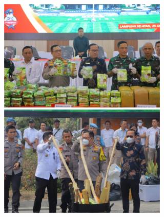 Cuplikcom - Lampung - Polda Lampung melakukan pemusnahan barang bukti ratusan kilo narkotika dan obat terlarang/berbahaya (narkoba) jenis