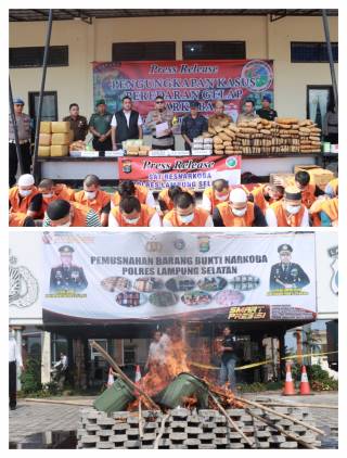 Polres Lamsel Berhasil Ungkap Kasus Sabu 22,356 kg, Ganja 195 Kg, Ekstasi 18.985 Butir