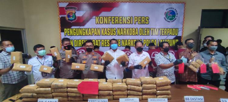 Ditres Narkoba Polda Lampung Gagalkan Penyelundupan 3kg Sabu,1.300 Pil Ekstasi dan 69kg Ganja
