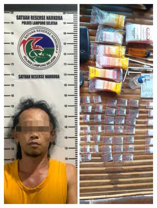 Cuplikcom - Lampung - Satuan Reskrim Narkoba Polres Lampung Selatan berhasil mengamankan NYO (40) warga Dusun Yogaloka