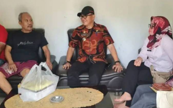 Kepala Dinas Kominfo Lamsel Jenguk Marhadan, Jurnalis Yang Mengidap Penyakit Parkinson
