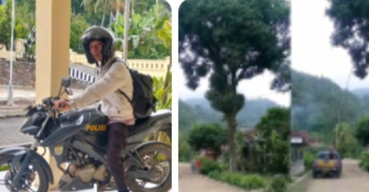 Cuplikcom - Tanggamus - Sebuah momen sederhana di pinggir jalan mendadak jadi perhatian warga. Seorang anggota polisi terekam tengah membantu